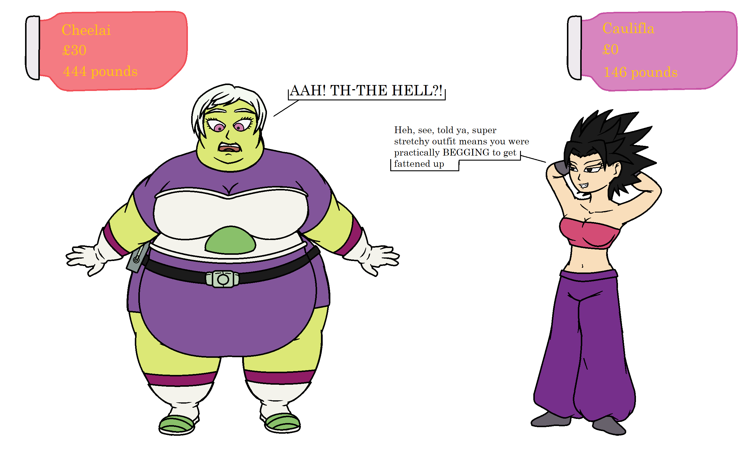 Feed The Fatty 1 Caulifla Vs Cheelai 2 By Missmalleable On Deviantart